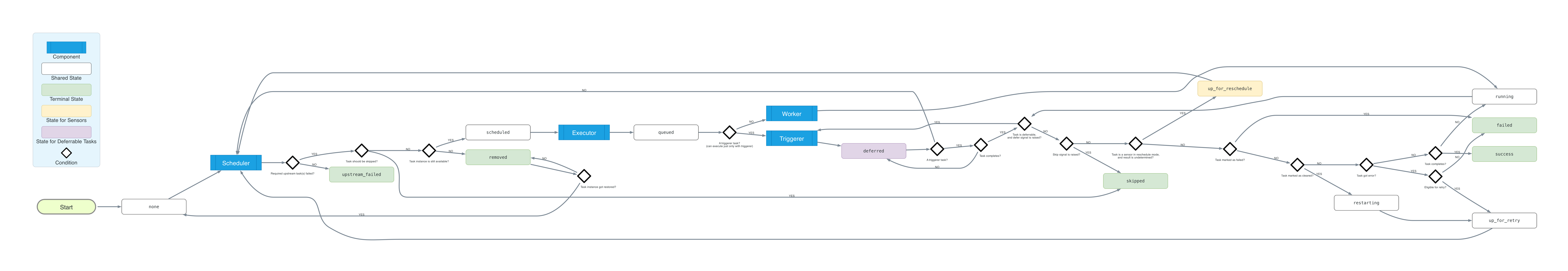 None -> Scheduled -> Queued -> Running -> Success\Failed\UpForRetry(->Scheduled)