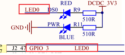 LED0 接到了 GPIO_3 上,GPIO_3 就是 GPIO1_IO03,当 GPIO1_IO03输出低电平(0)的时候发光二极管 LED0 就会导通点亮,当 GPIO1_IO03 输出高电平(1)的时候发光二极管 LED0 不会导通,因此 LED0 也就不会点亮。