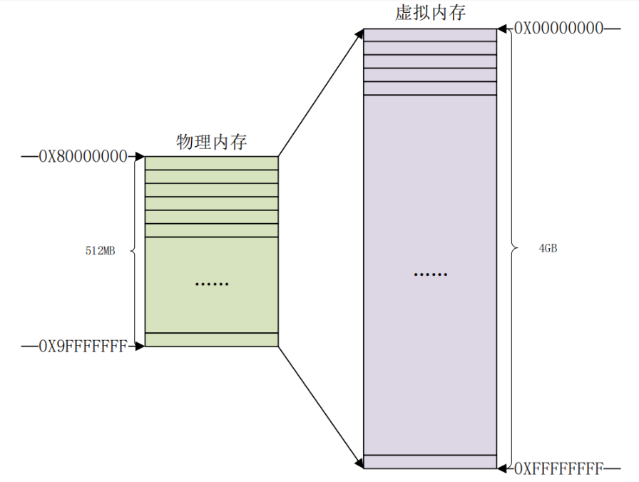 - 物理地址:开发板上有 512MB 的 DDR3,这 512MB 的内存就是物理内存