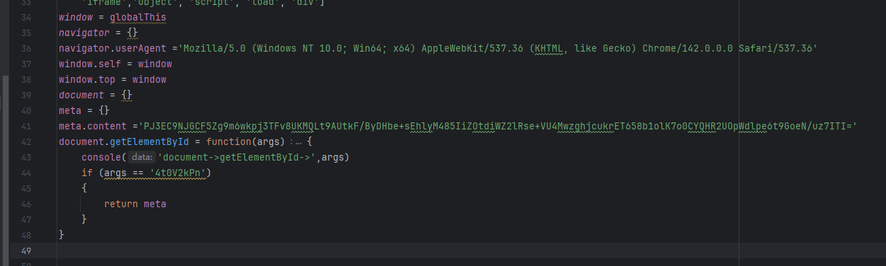 先console.log赋值console就可以打印了然后就疯狂补环境了。