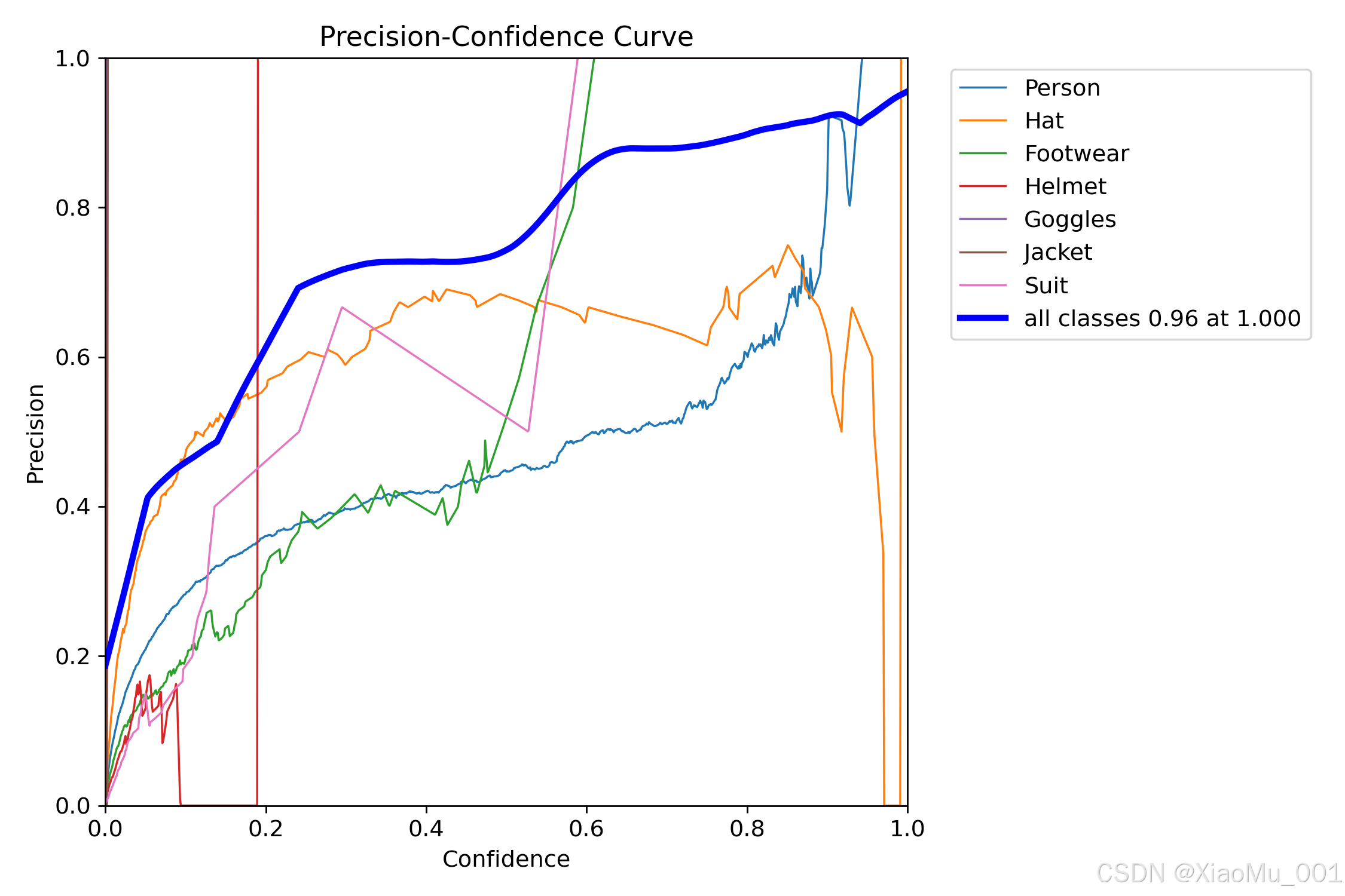 BoxP_curve: 展示了不同置信度阈值下的精确率。通常置信度越高,精确率越高。