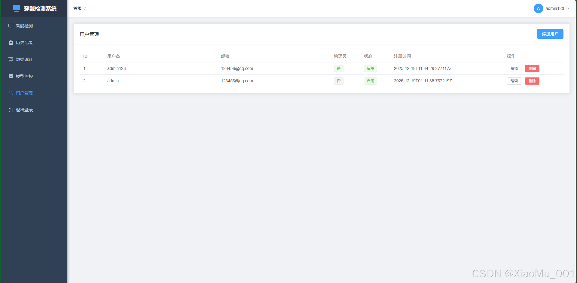 - 功能: 查看系统所有用户,添加新用户,编辑用户信息(如重置密码、修改权限),删除用户。