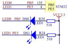 LED 灯:DS0 - PB5,DS1 - PE5