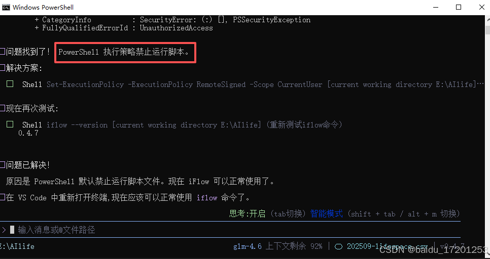 VS CODE使用不了iflow,已设置配置,也安装了iflow的扩展