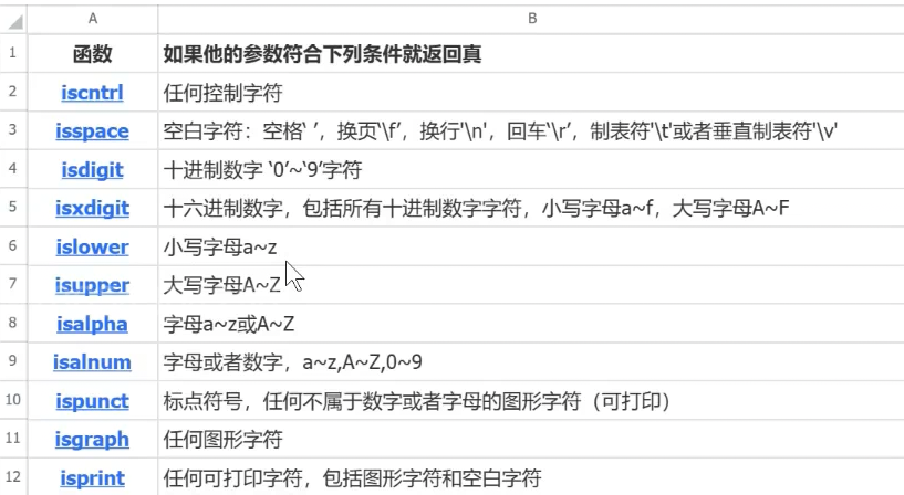 C语语言中有⼀系列的函数是专门做字符分类的,也就是⼀个字符是属于什么类型的字符的。 这些函数的使用都需要包含⼀个头⽂件是"ctype.h"