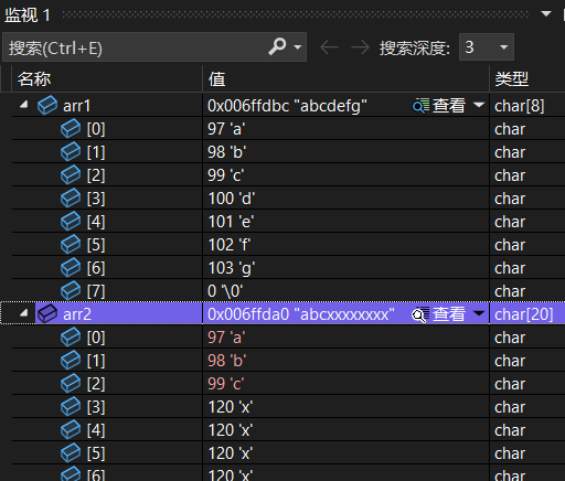 我从arr1中复制了三个值,现在赋值给arr2的前三个,我们通过调试看一下