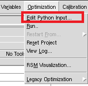 输入文件(选择 Optimization > Edit Python Input)定义了一个可能由多个任务组成的优化策略。这个文件是一个 Python 脚本,其中注入了与优化框架相关的一些附加类和对象,包括: