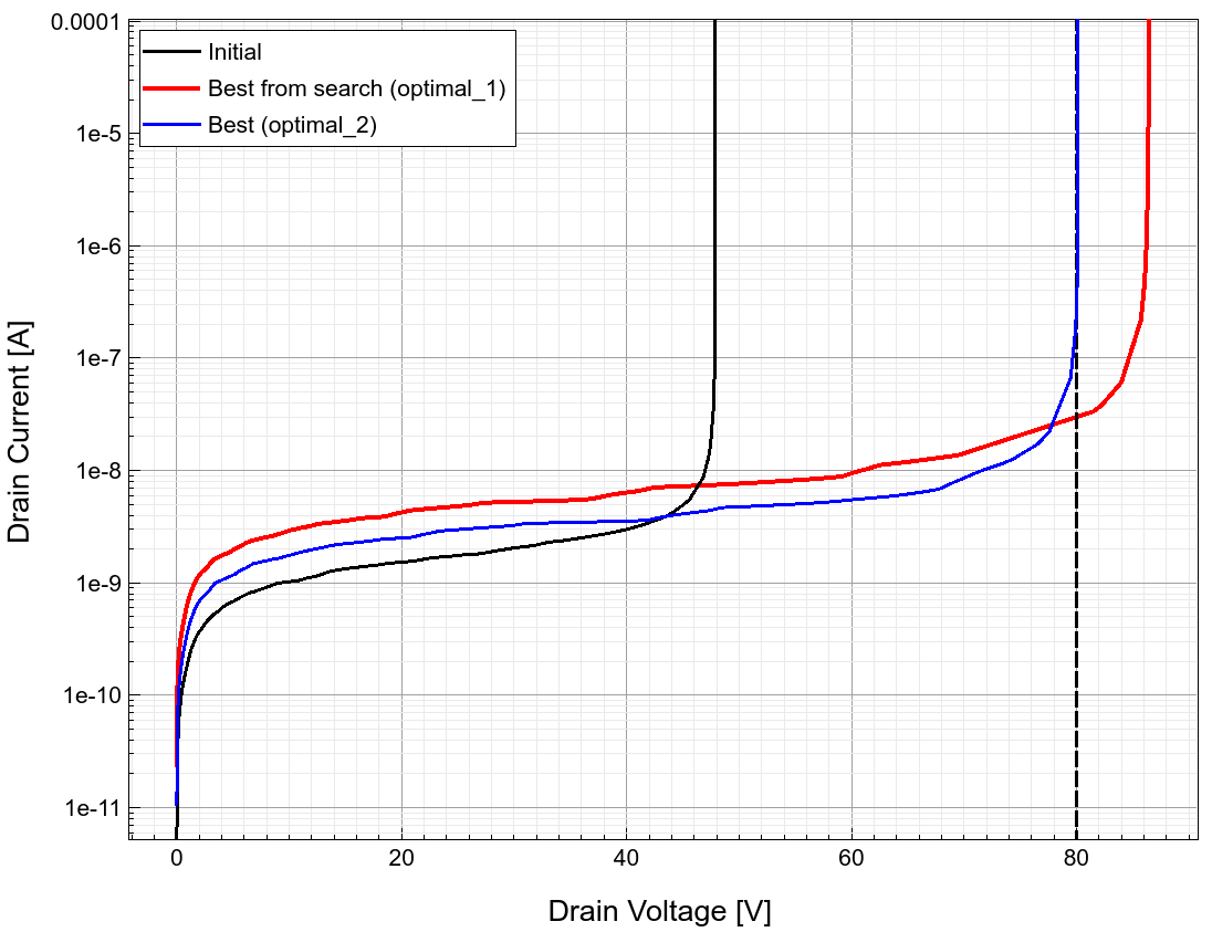 图 24. 初始、optimal_1 和 optimal_2 场景的 Id--Vd 特性曲线。(点击图片查看完整尺寸。)