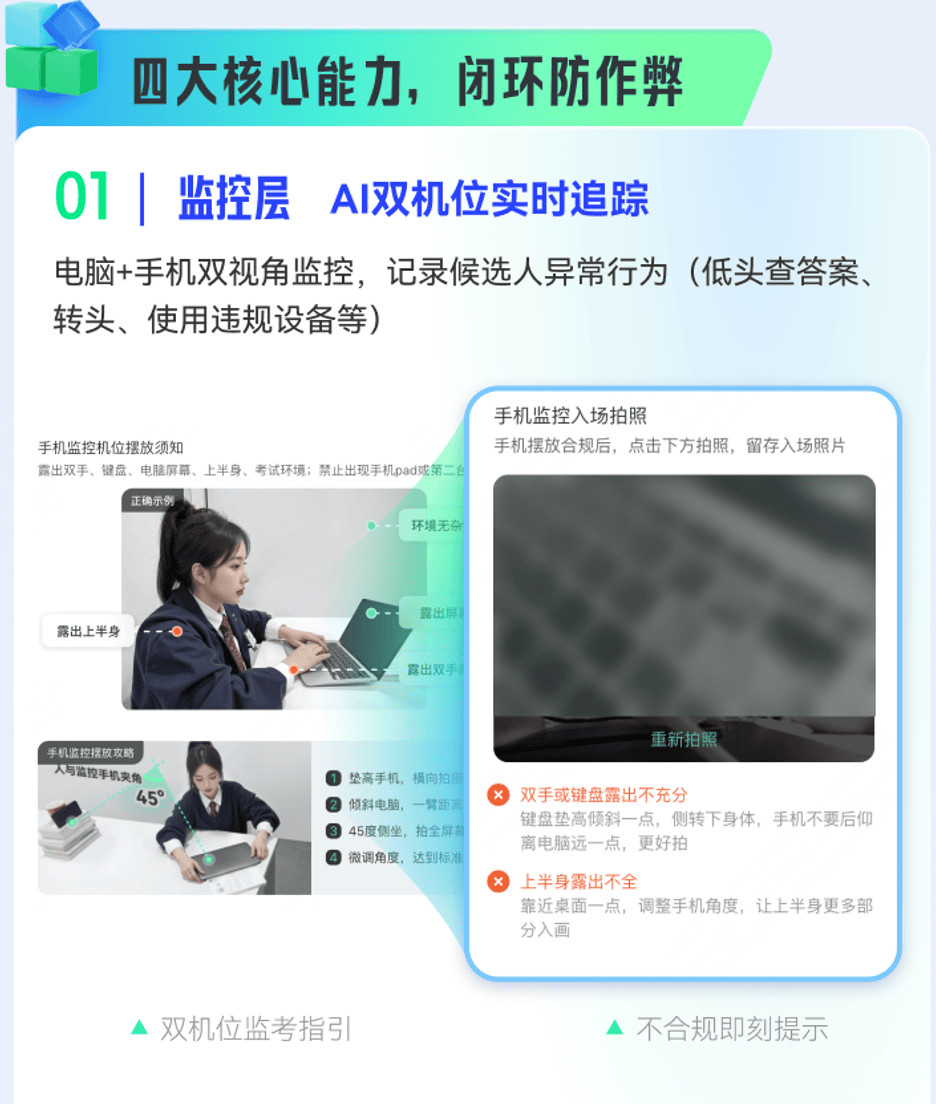 - 牛客AI面试内置AI智能监考模块,实现全流程防作弊闭环。