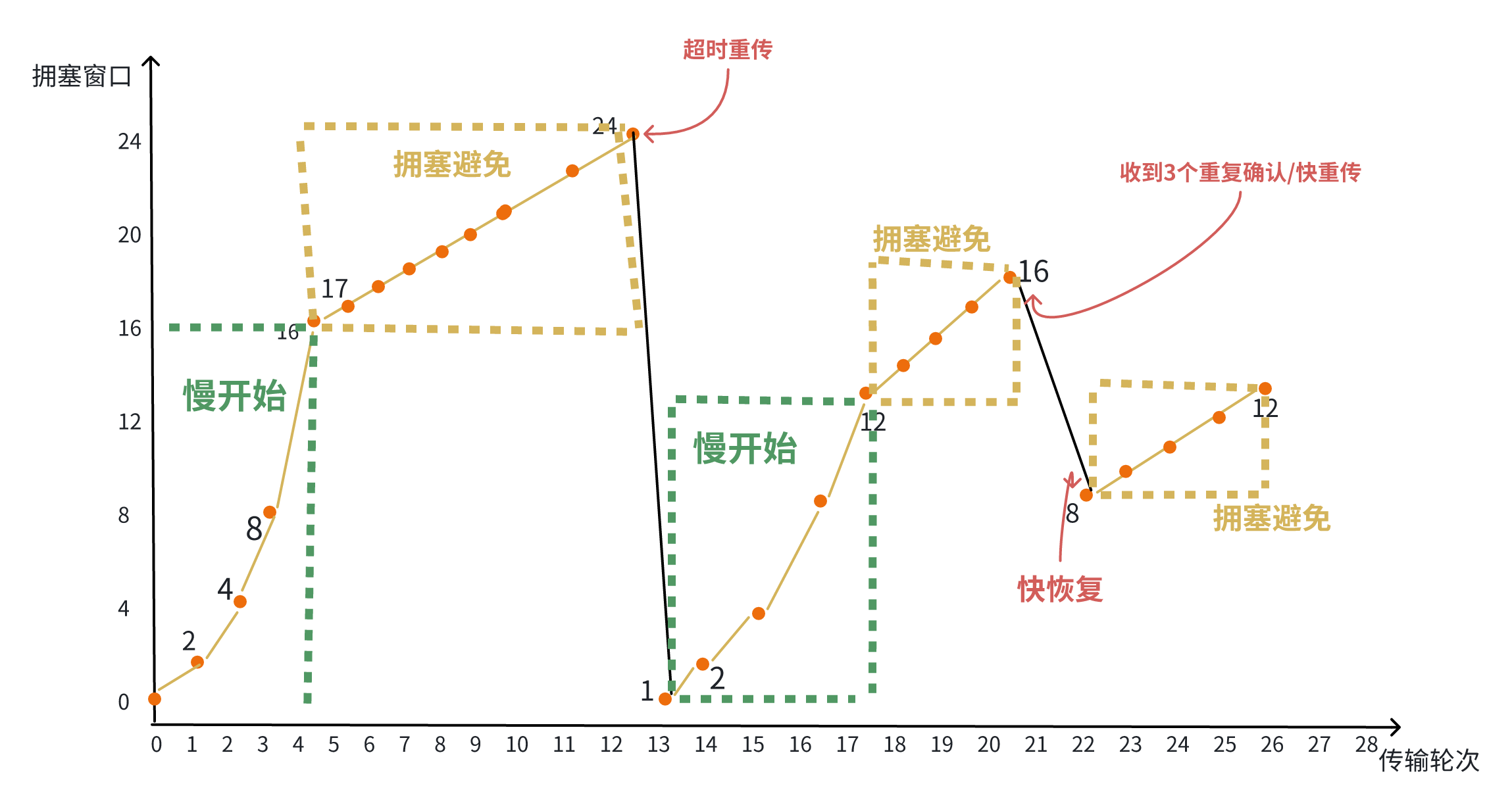 快重传和快恢复是1990年提出的(TCP Reno版本)