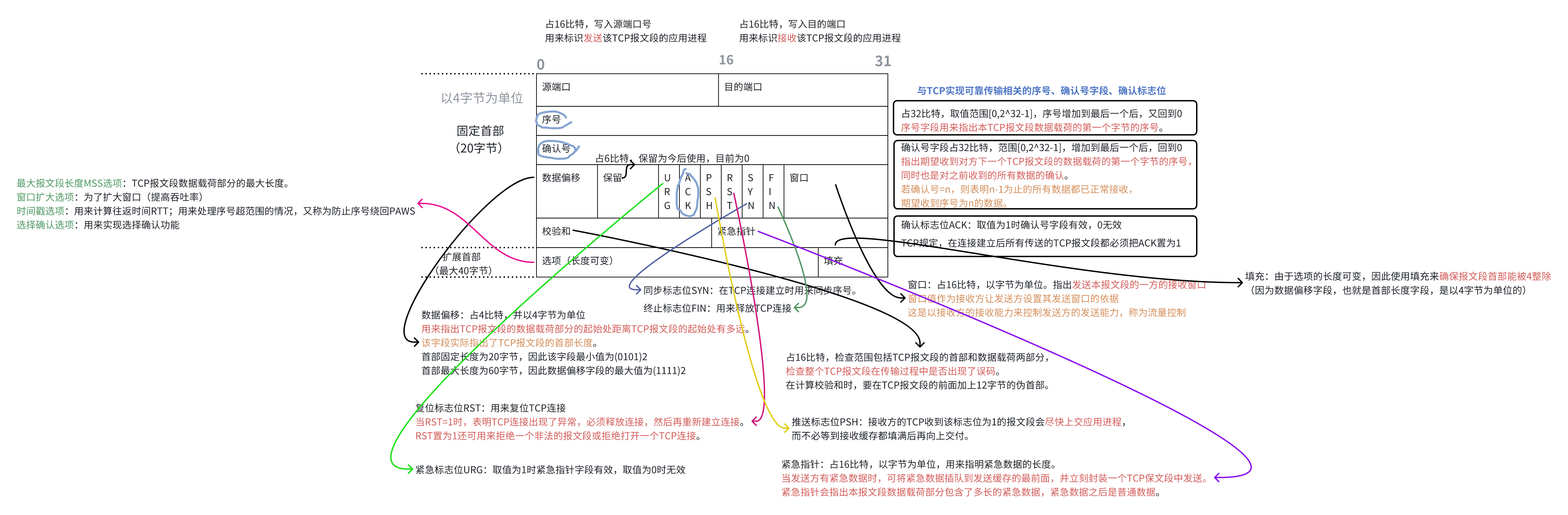 -->TCP报文段首部最小20字节,最大60字节(用于流量控制,拥塞控制)