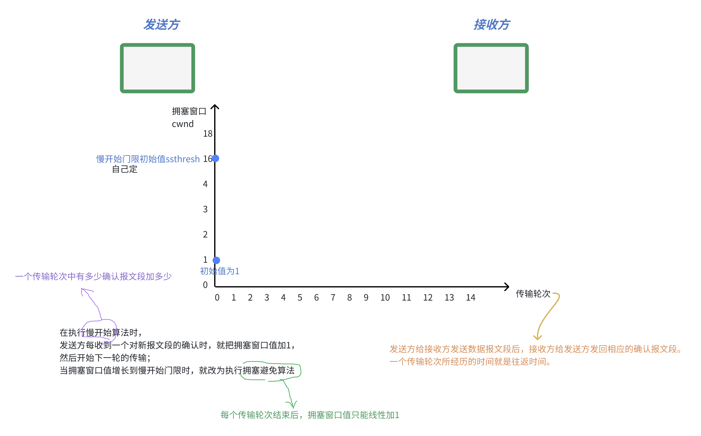 有时,个别报文段会在网络中丢失,但实际上网络并未发生拥塞。这将导致发送方超时重传,并误以为网络发生了拥塞,发送方把拥塞窗口cwnd又设置为最小值1,并启动慢开始算法,降低了传输效率。