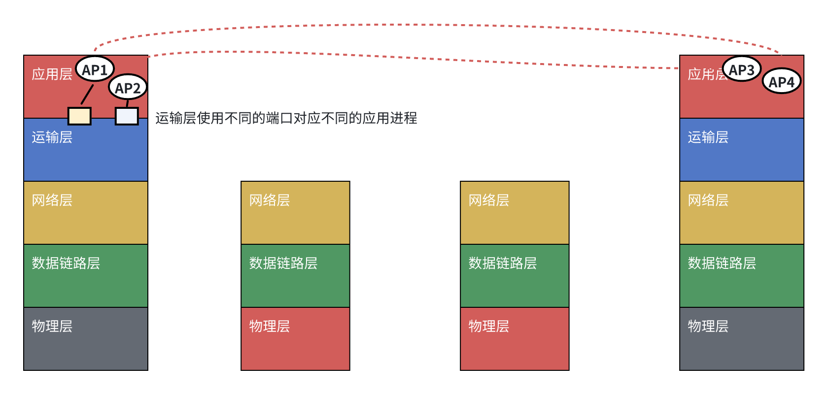 注意:这里的端口并不是指看得见、摸得着的物理端口,而是指用来区分不同应用进程的标识符。