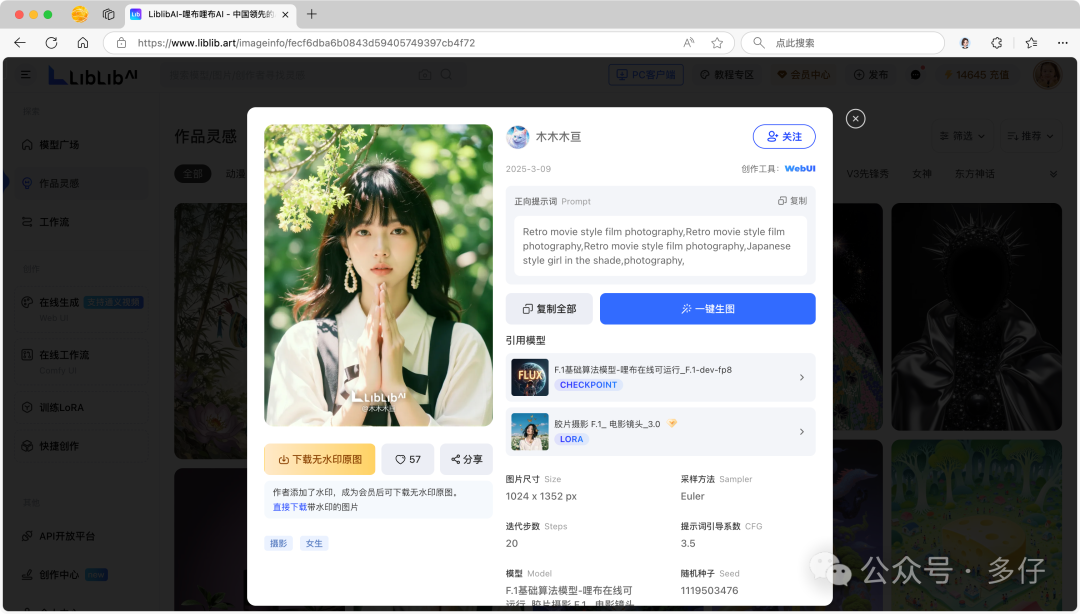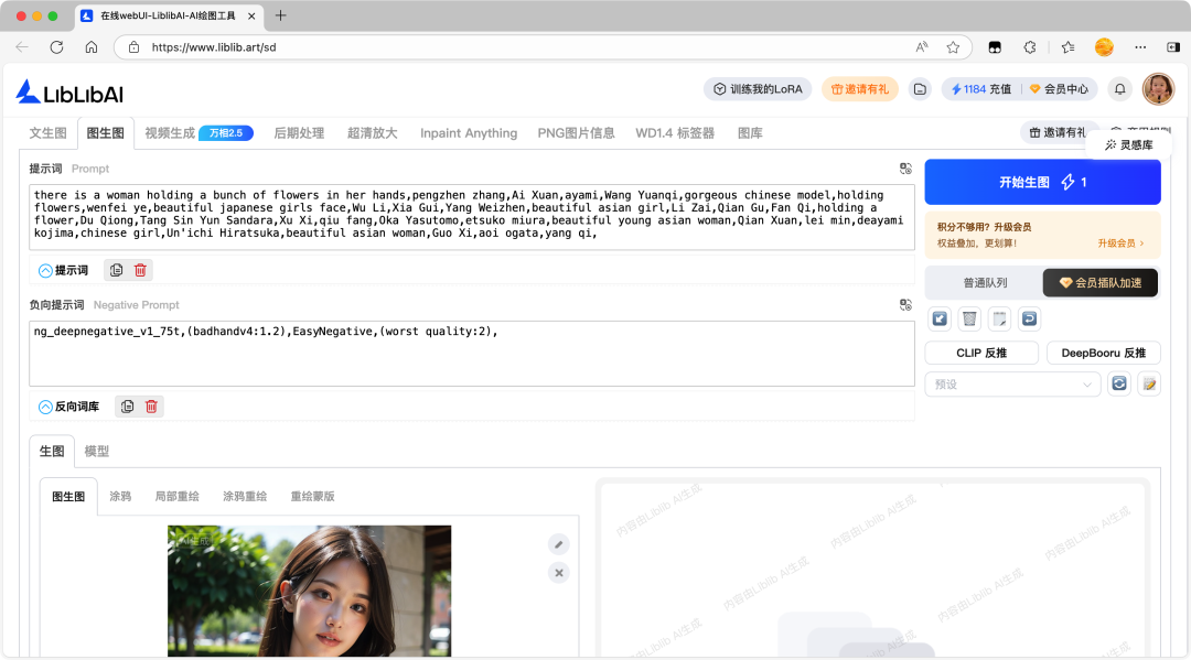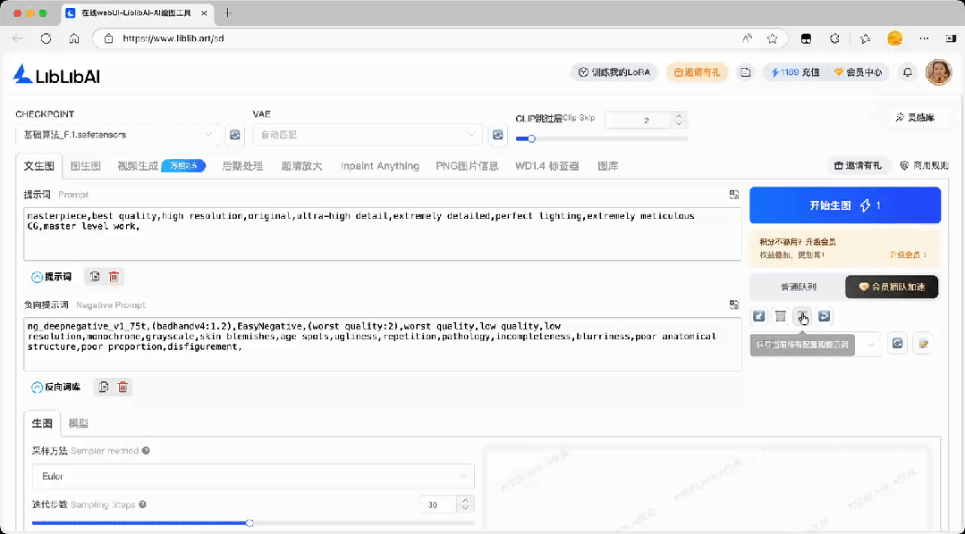 LiblibAI 是一个 AI 图像创作绘画平台和模型分享社区,基于 Stable Diffusion 模型提供在线版 WebUI,平台上有 10 万 + AI 模型和创作作品,涵盖多种风格和领域,用户可免费下载或在线使用,平台设有提示词窗口,能帮助用户优化提示词并翻译为英文,方便用户生成高质量图像。