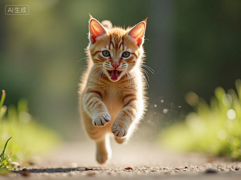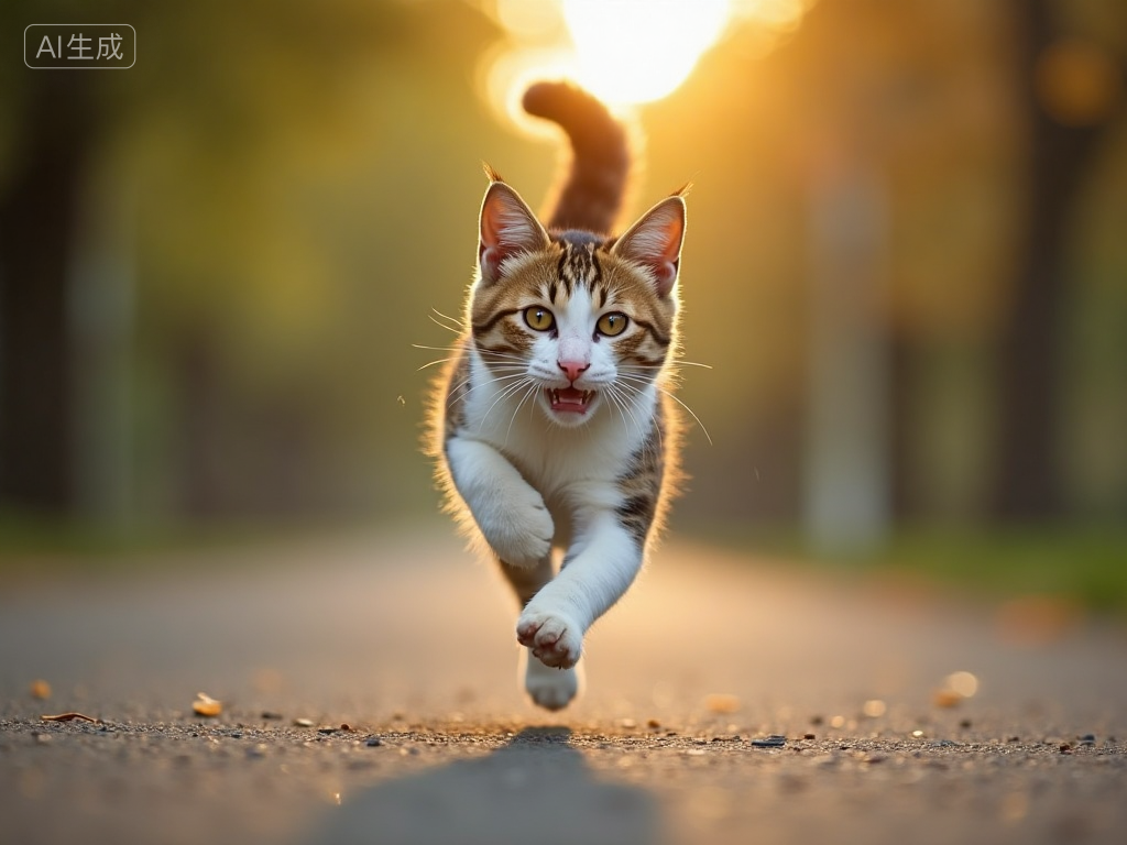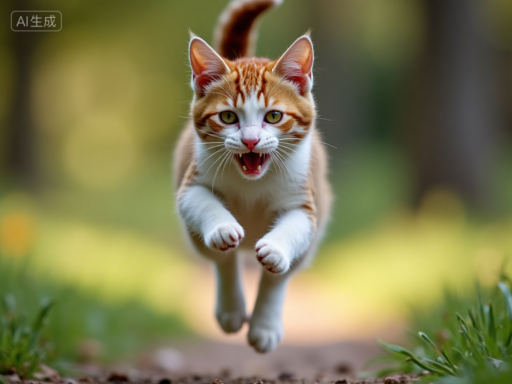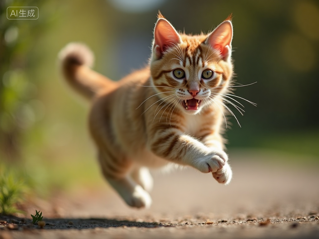 - 正向提示词(英文):Cat,running,jumping,telephoto lens