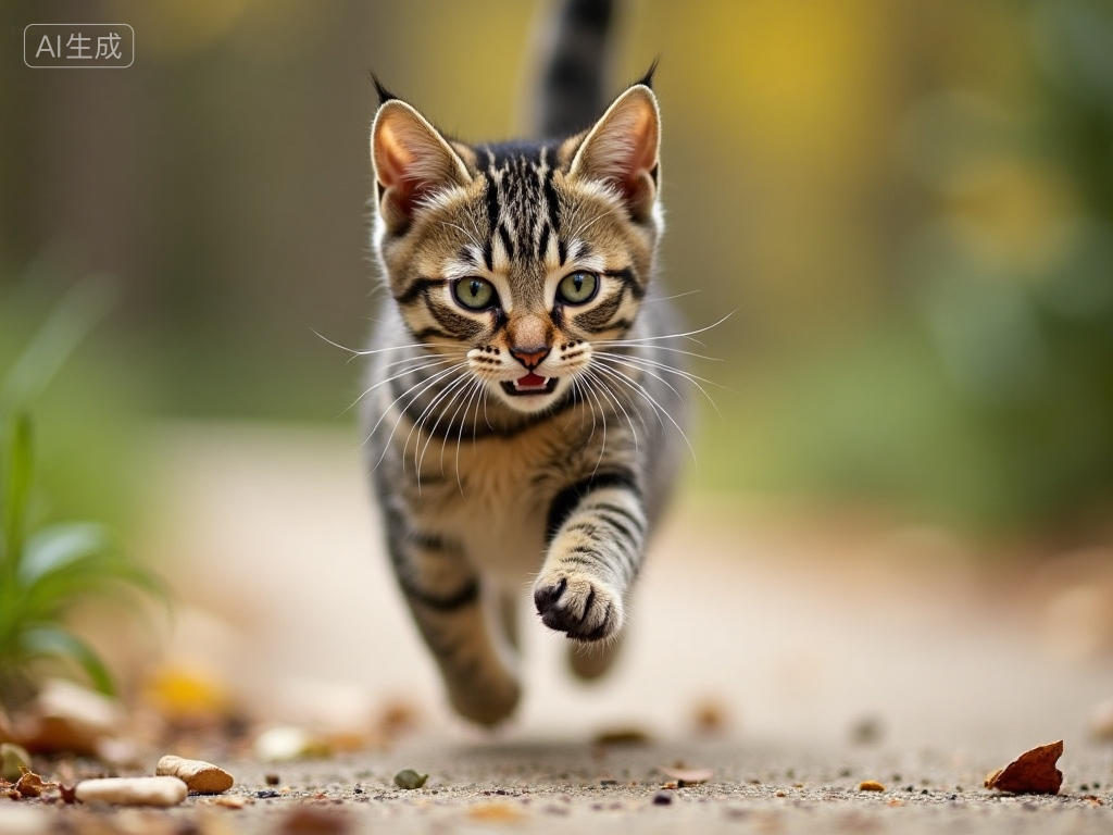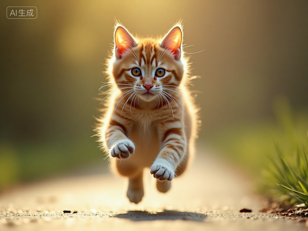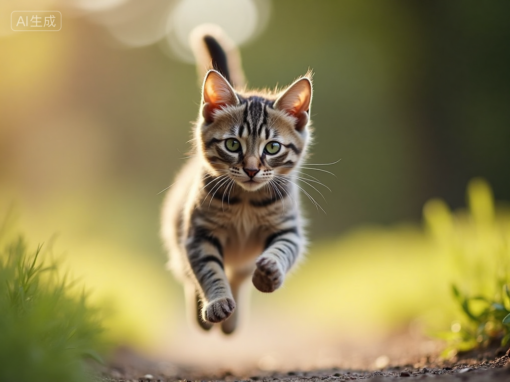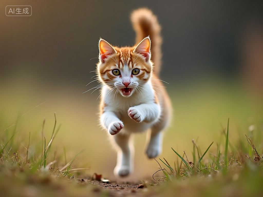 - 正向提示词(英文):Cat,running,jumping,telephoto lens