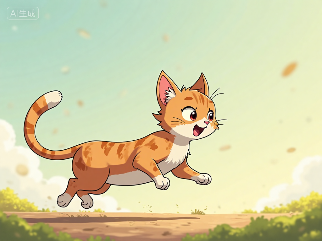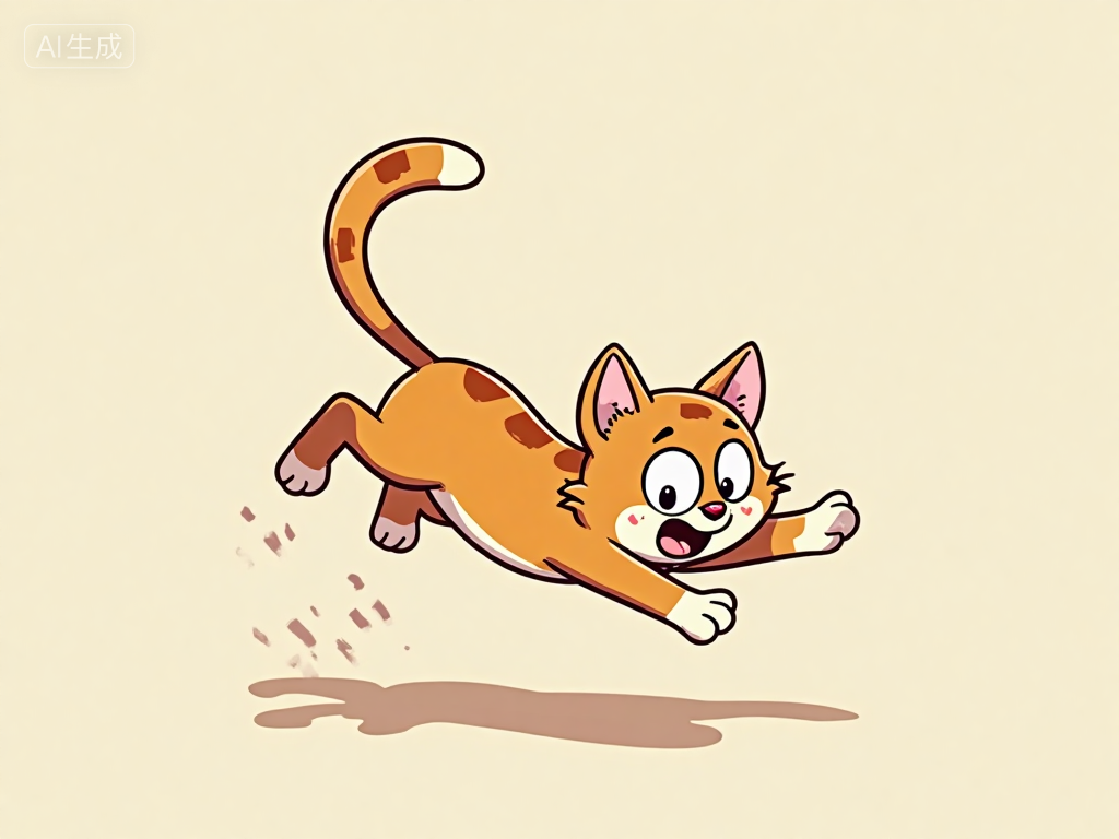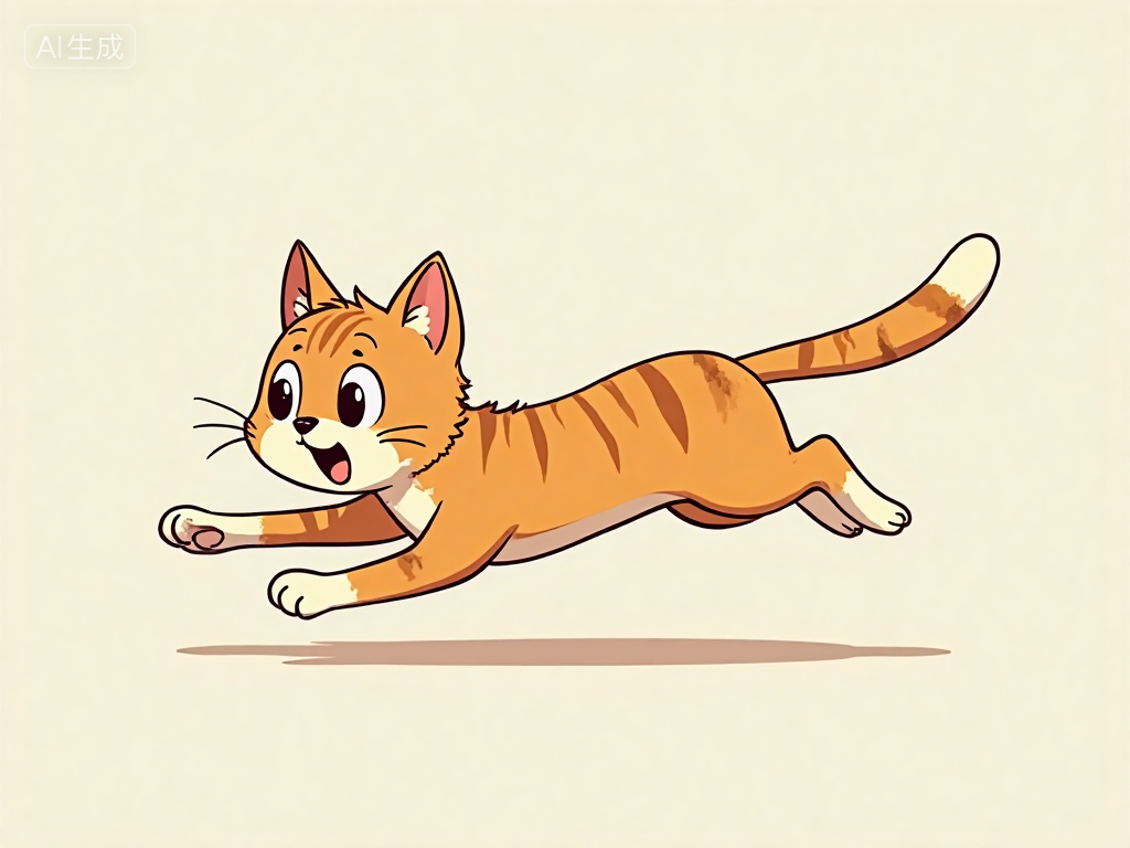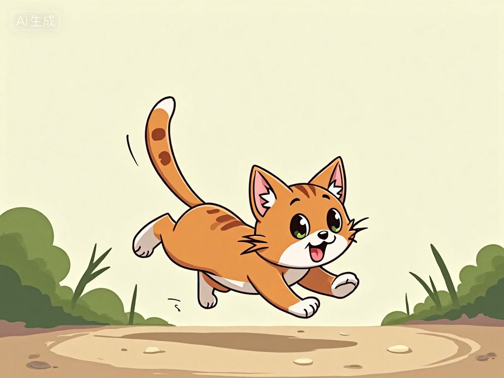 - 正向提示词(中文):猫,奔跑,跳跃,卡通,动漫卡通,动画风格,平面动漫