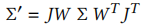 利用投影变换的仿射近似雅可比矩阵 J,计算相机坐标系下的协方差矩阵 Σ':