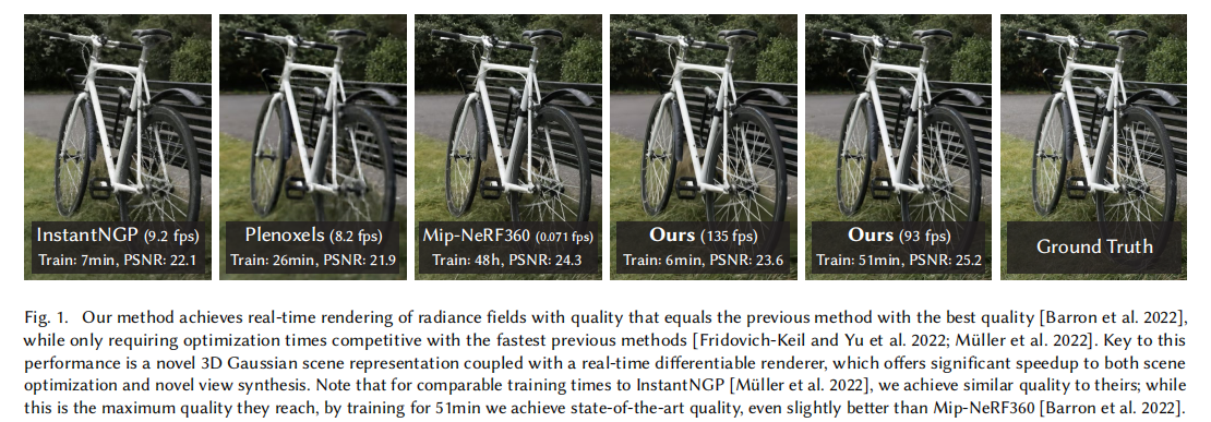 - 质量与速度的权衡:顶尖质量方法(如 Mip-NeRF360)需 48 小时训练,渲染帧率仅 0.071 fps,无法满足实时需求;