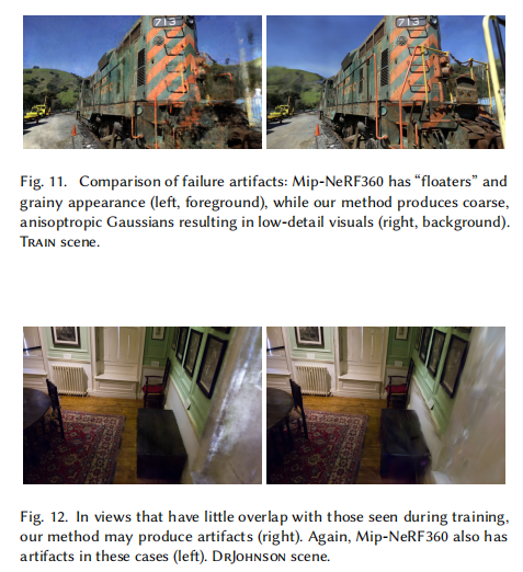 - 未充分观测区域的伪影:在输入图像覆盖不足的区域,仍会出现浮点数或低细节问题(图 11);