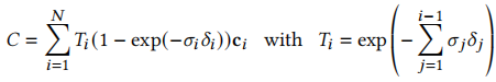 - 设正向传播中像素的最终累积不透明度为