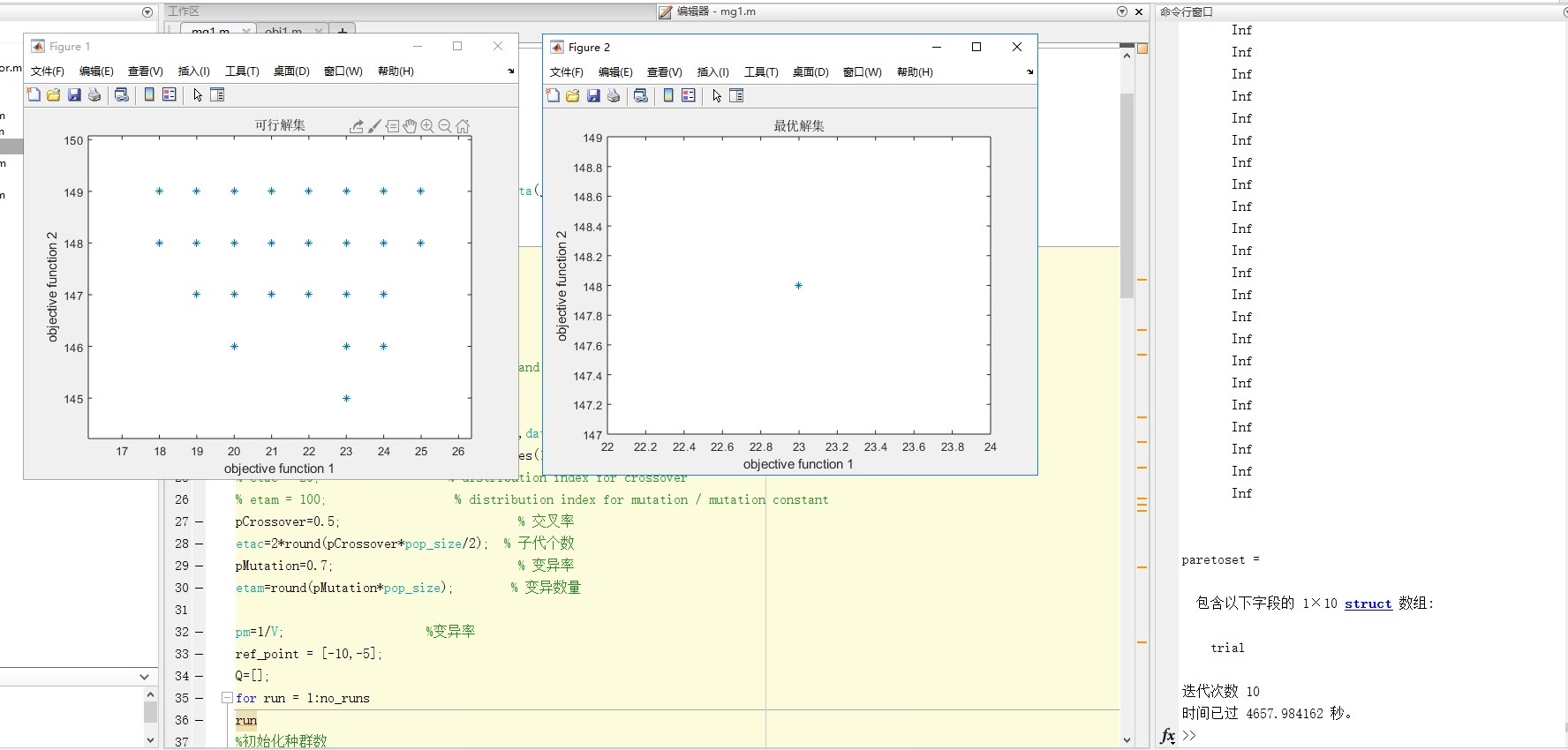 最后得到的Pareto前沿确实像甲方说的那样"不太明显"。用scatter3画三维图的时候(把两个目标加约束违例当三个轴),点群分布得像被炸过的蚂蚁窝。不过发现在载货量约束放宽10%的情况下,解集数量能提升3倍左右,说明硬约束卡太死可能是瓶颈。