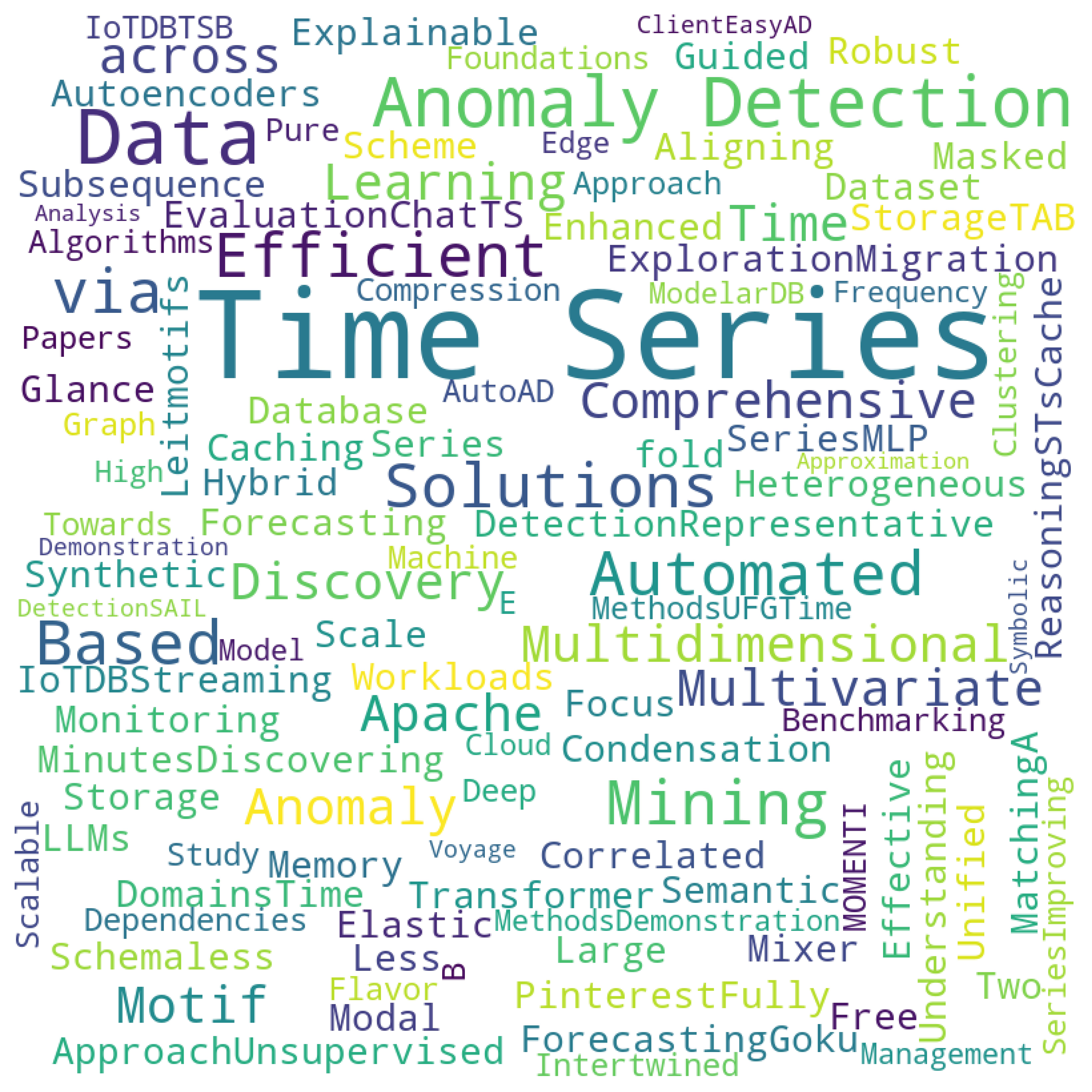 时间序列Topic:预测,异常检测,聚类,压缩,自动化,大模型,时序数据库等。