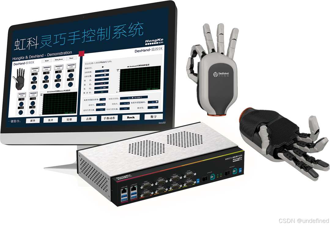 虹科灵巧手运动控制方案以**「通信 + 监控 + 控制」**为核心逻辑 ,搭建起从信号采集到运动执行的完整验证链路,让灵巧手的每一个动作、每一组数据都可监测、可调控。