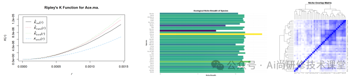 1)空间自相关与空间点格局分析研究空间数据的相似性,特别是某一现象在空间上的分布模式,了解空间点是聚集分布、均匀分布,还是随机分布。(莫兰指数、Geary's C、Ripley's K函数)