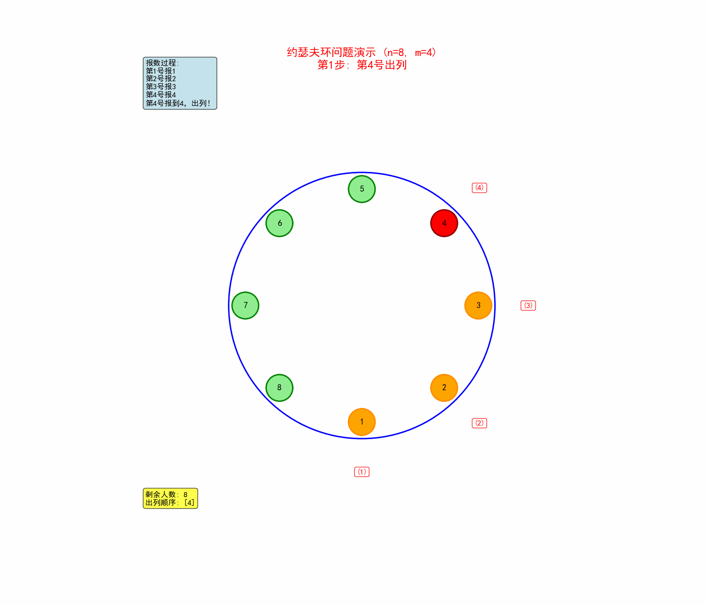 title = f"约瑟夫问题演示 (n={self.n}, m={self.m})\n"