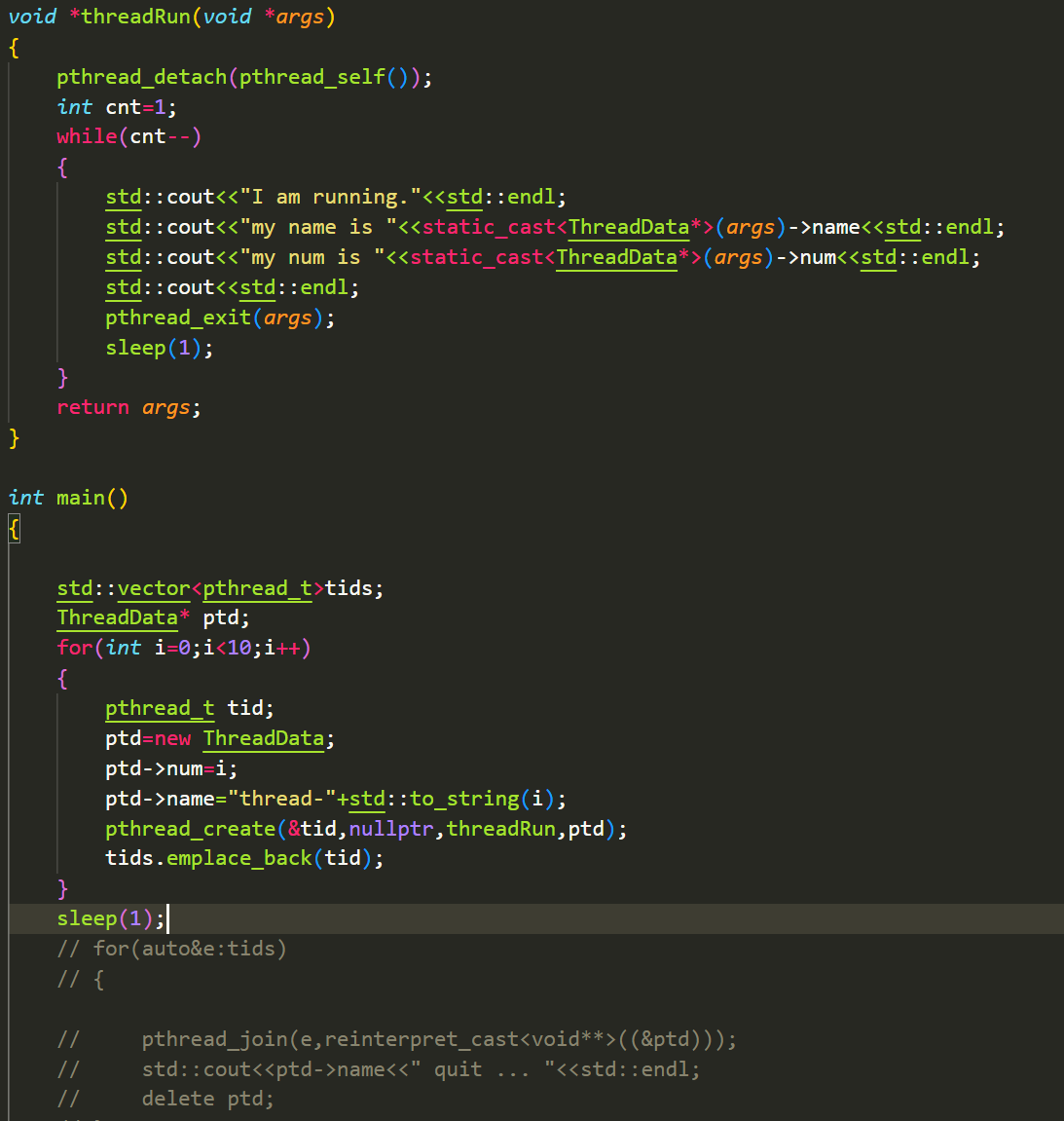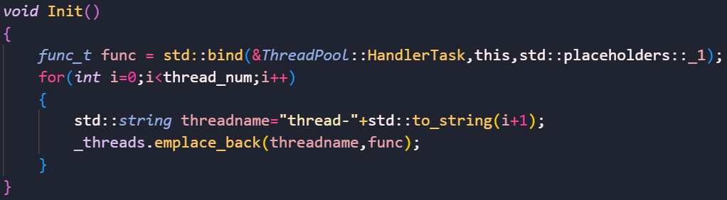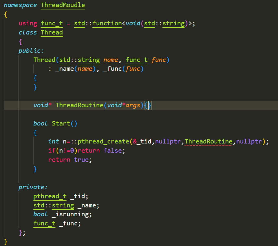 然后还记得我们传入的类成员函数,由于有一个默认的this指针,导致参数不匹配。之前的解决方法是将this指针传给pthread_create。这个方法多少有点low了,我们现在改用包装器bind,将第一个参数绑定成this指针即可: