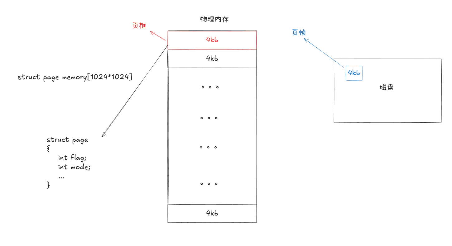 前面文件系统部分讲过,磁盘中8个扇区,即一个块,大小为4kb是OS的读写最小单位。内存也是: