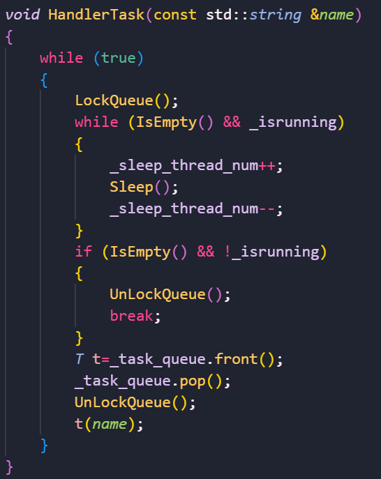 这个HandlerTask需要注意,千万不要将执行任务放在临界区,不然你写多线程来干什么,任务全都串行了!!
