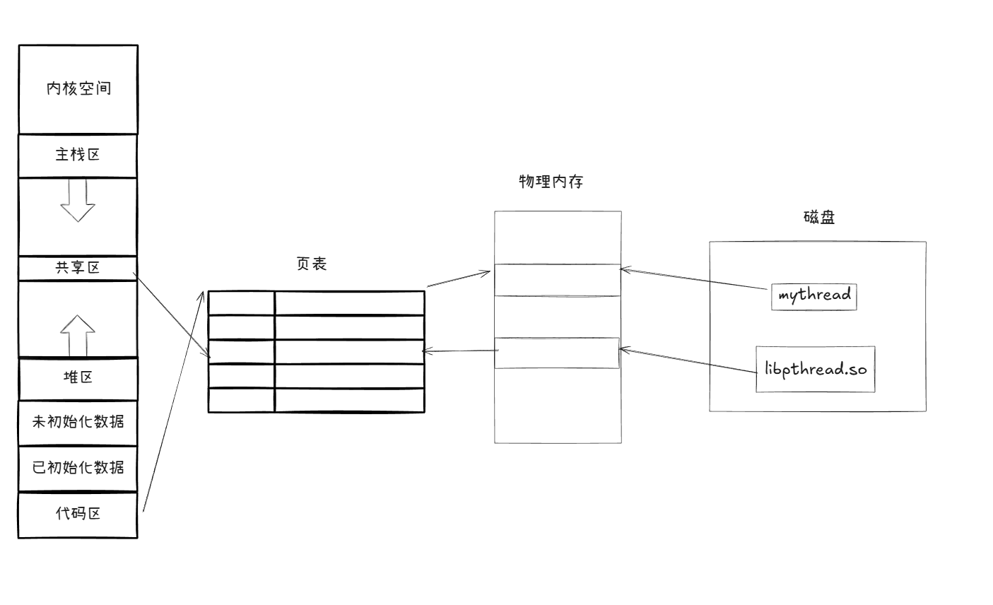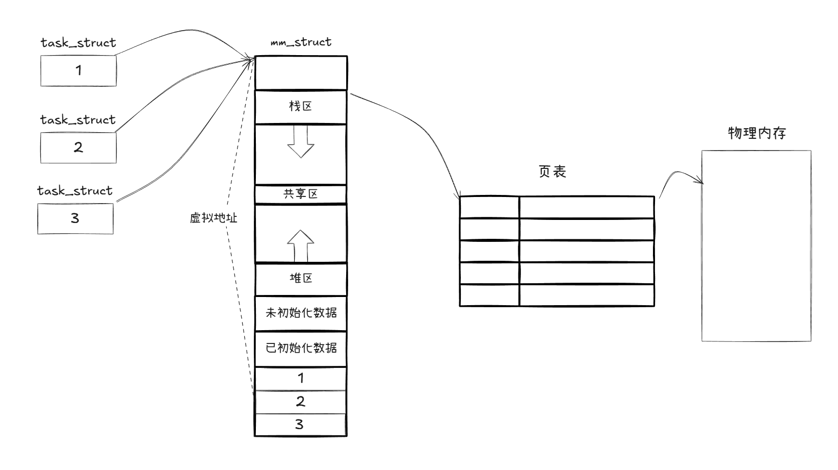 然后我们创建进程时,不创建新的虚拟地址和页表,共用一份页表。不同的进程执行不同的代码部分,称这些进程为执行流,这也就是所谓的线程。