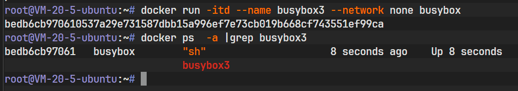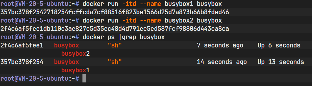 (注:如果之前已存在名为 busybox1 的容器,需先删除或更名,此处演示为新建场景)