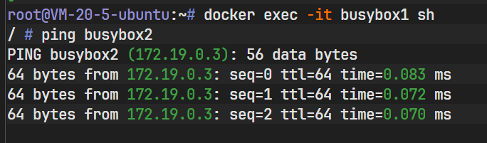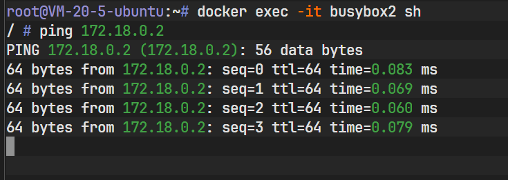上图中的 Ping 结果显示,ping busybox2 自动解析到了 busybox2 的实际 IP 地址,并成功收到了响应。这证明了自定义 Bridge 网络下的 Docker DNS 服务正在正常工作,极大地简化了服务发现的配置。