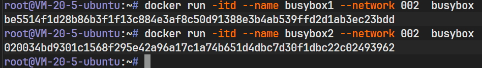 在该网络下创建两个容器,busybox1 和 busybox2: