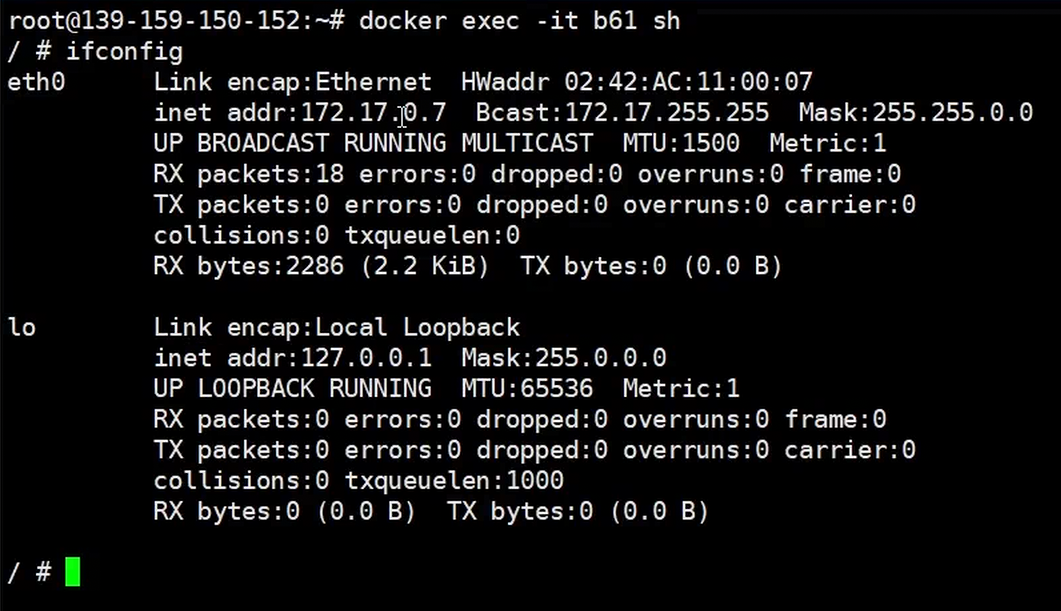 在容器内部执行 ifconfig 命令查看网络接口信息: