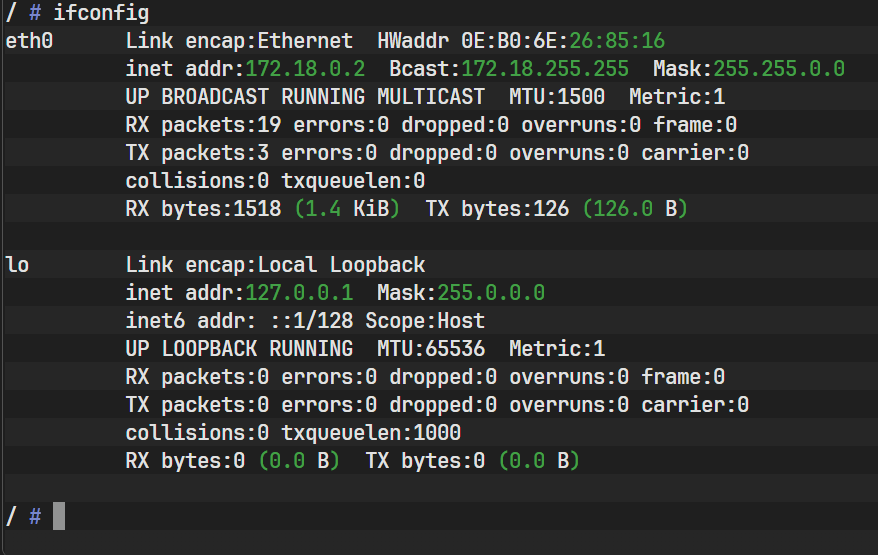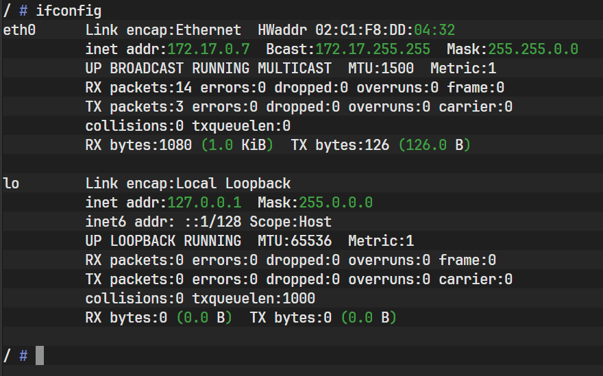 对比两张图的输出可以发现,busybox2 的 MAC 地址和 IP 地址与 busybox1 完全一致。这证明它们确实在使用同一个网络栈。