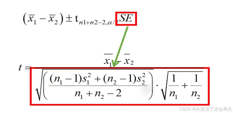 The denominator therefore represents the standard error of the difference between the two sample means , which tells us the uncertainty of the difference we have observed, this equation is only valid if the two groups have the same sample size.