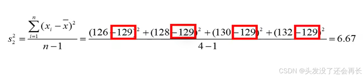 size since we have four observations from each group our two groups have the same sample size. X bar 1 denotes a sample mean of group 1, X bar 2 denotes a sample mean of group 2, so numerator represents the difference between two groups . S1 represents the sample variance of group 1, S2 represents the sample variance of group 1, the n1 and n2 denote the sample size of group 1 an group 2.
