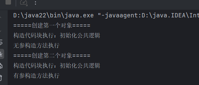 System.out.println("构造代码块执行:初始化公共逻辑");