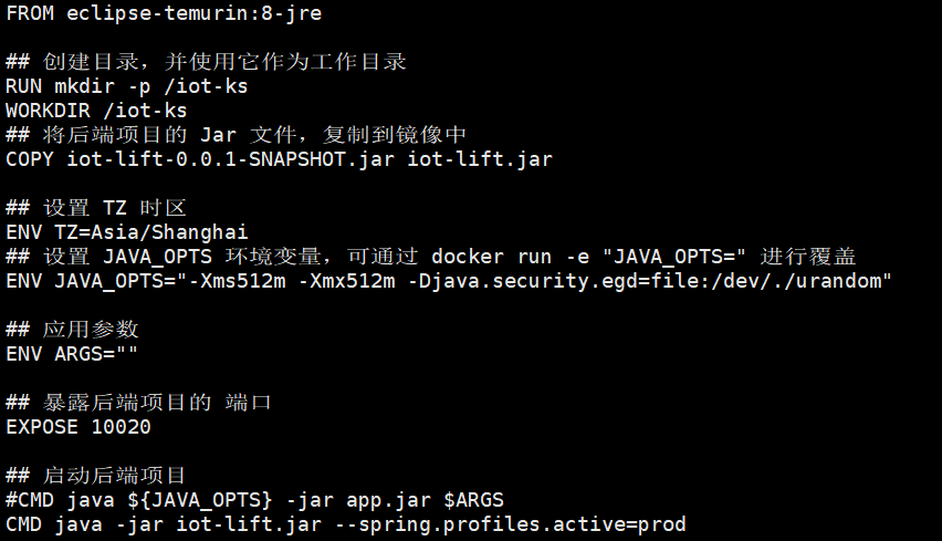示例:spring boot java程序镜像 Dockerfile文件如下: