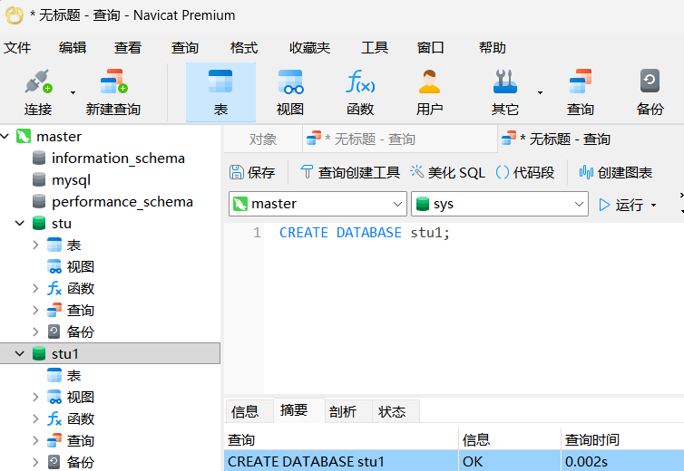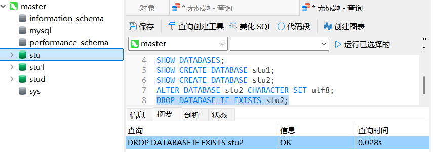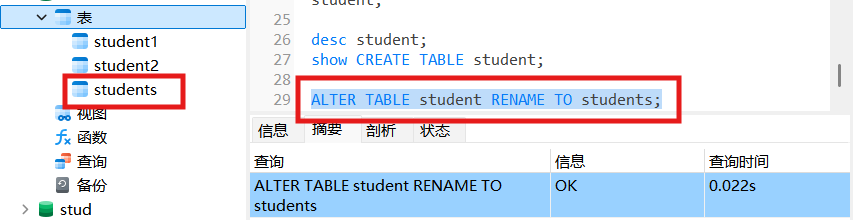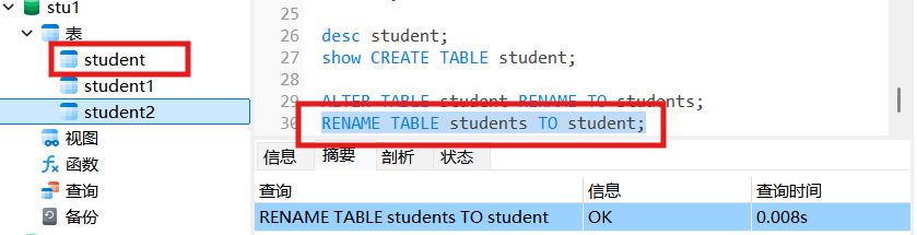 注意:执行语句后如果显示成功,但是查看发现没变的时候,一定要右击点击刷新,基本上一些语句都是要刷新后才会更新。