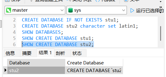 创建db4数据库,判断是否存在,并指定字符集为gbk