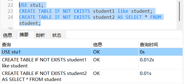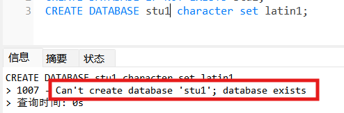 注意这里也是创建表,所以已经存在的数据库是可以成功使用这个语句