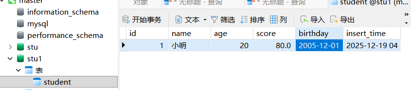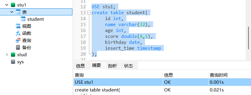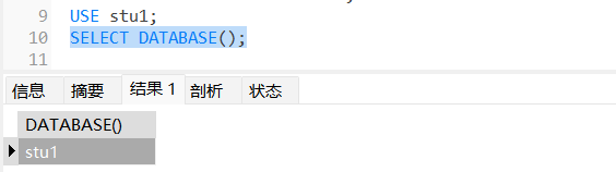 上述执行过使用stu1后现在查询当前使用的数据库是stu1