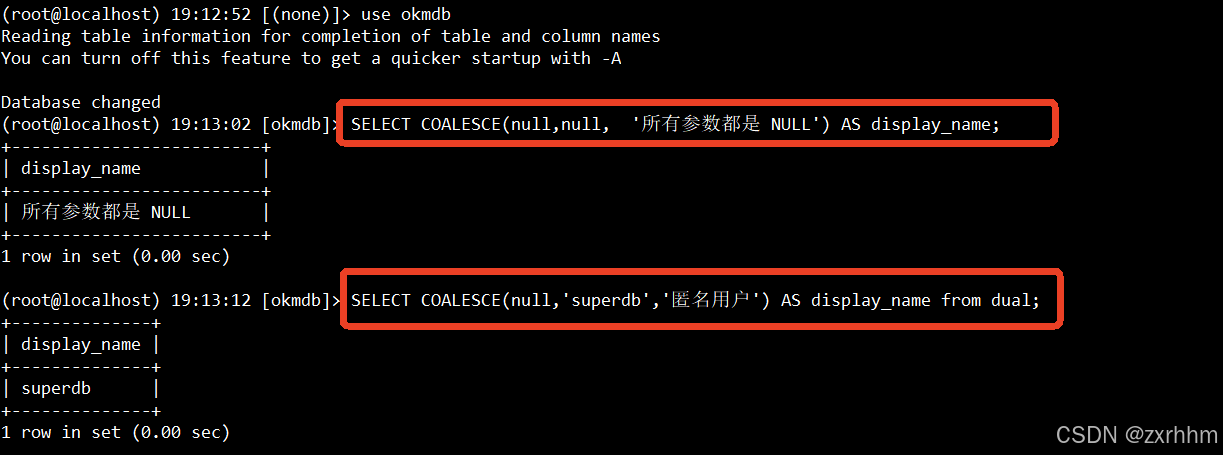 - NVL(expr1, expr2)(Oracle):只支持两个参数,相当于 COALESCE(expr1, expr2)