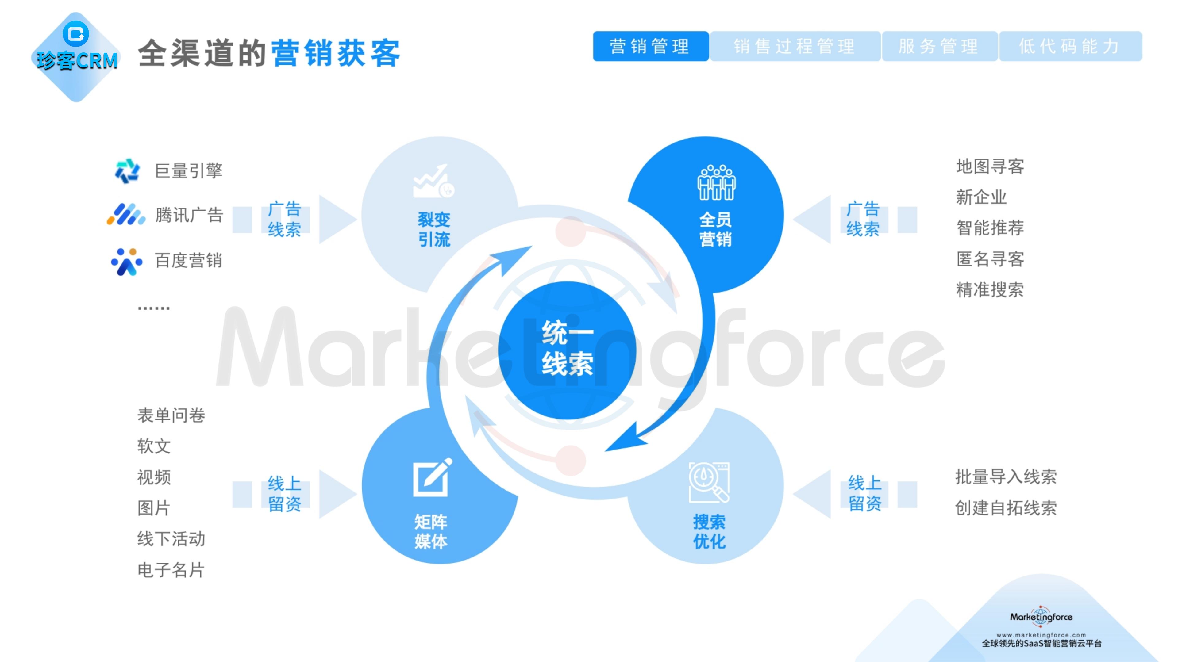 - 客户洞察模块:整合多源数据,构建360°全景客户画像,实现精准获客与客户分层;