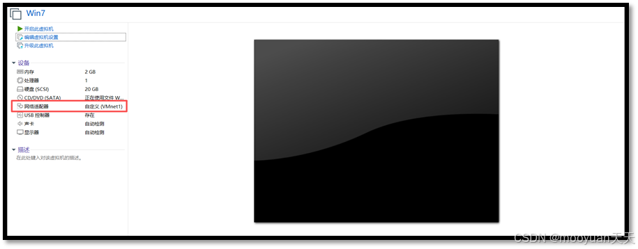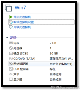 将网卡配置为主机模式(Vmnet1),具体如下所示。